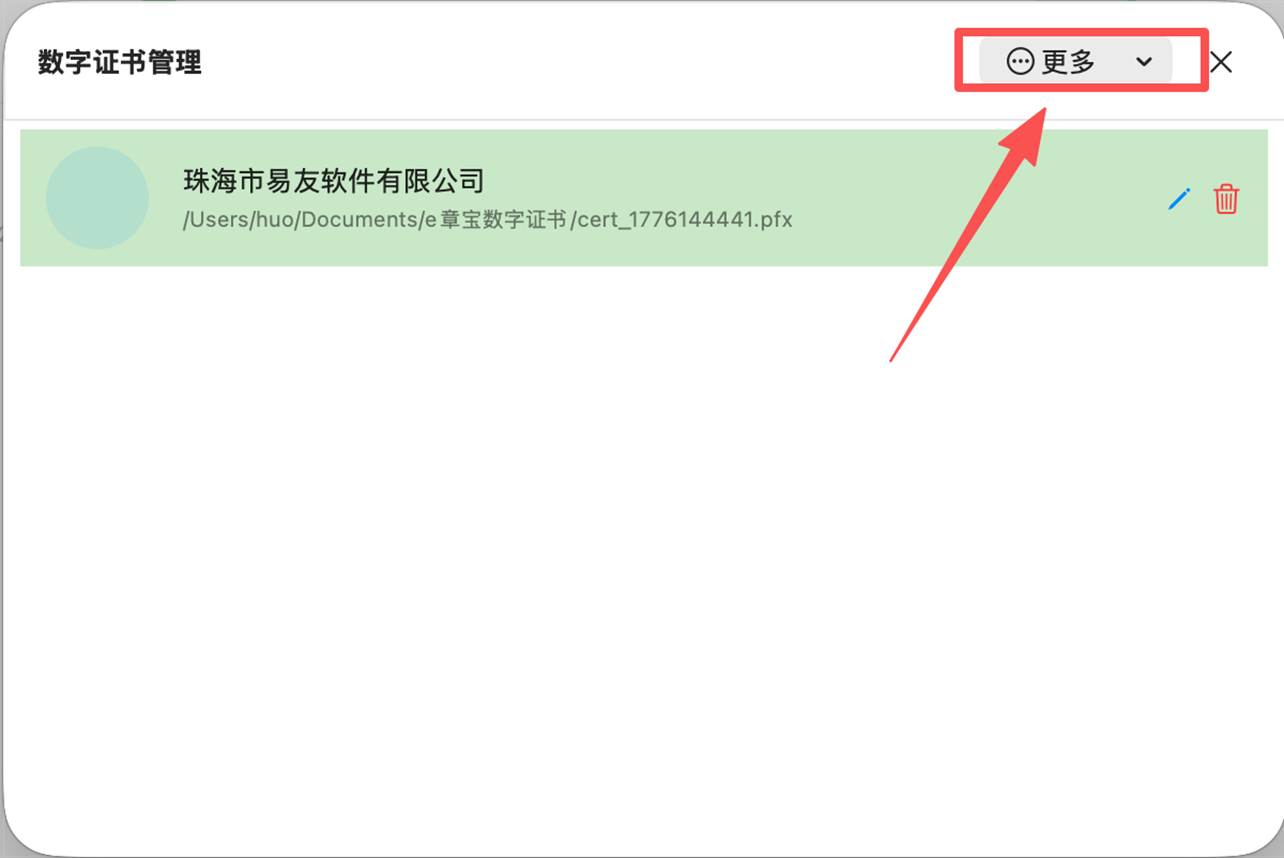 1. 在证书管理窗口,单击右上角的