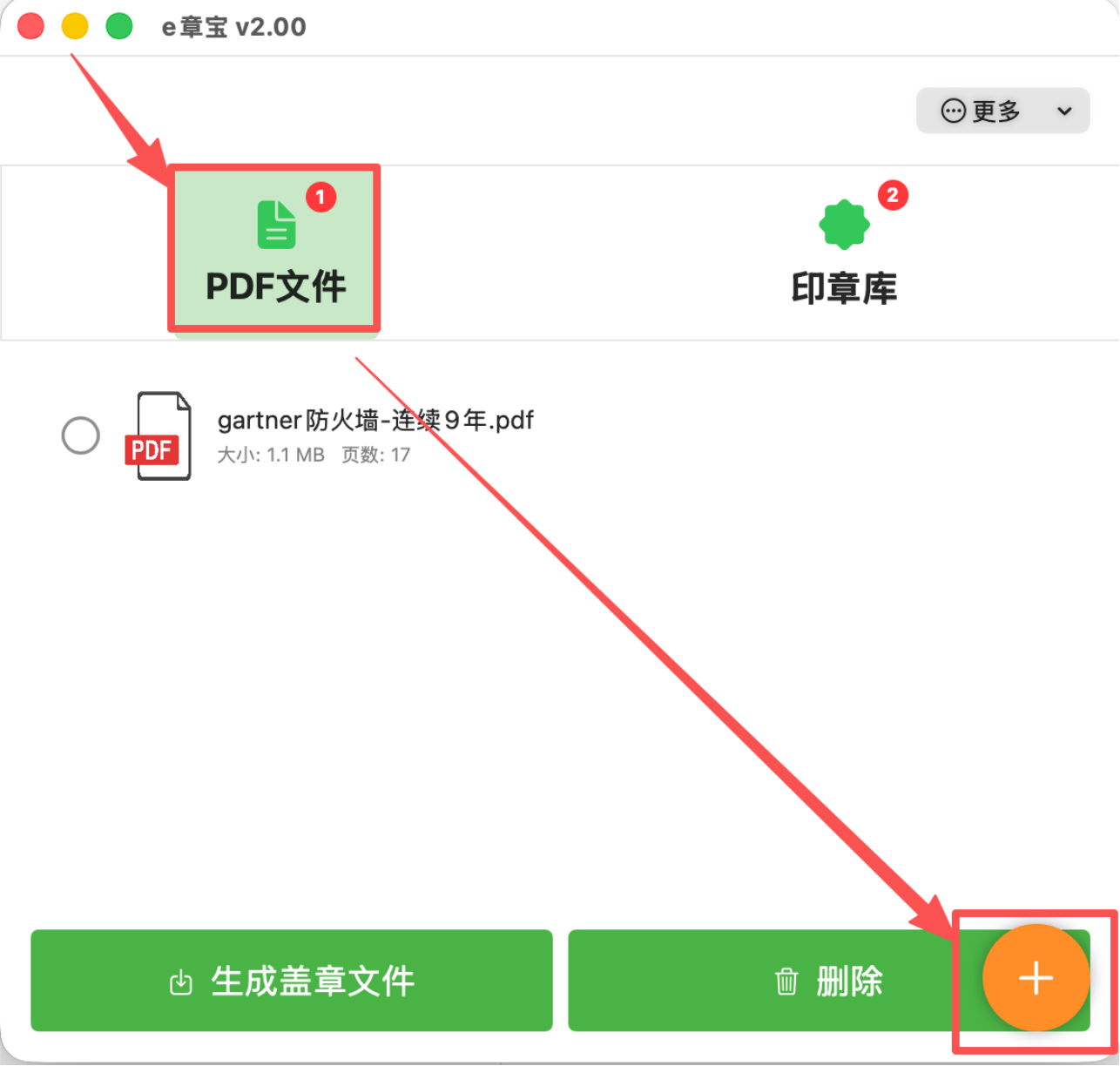 3。二者区别:主界面里的“生成盖章文件”,一次可以生成多个(只要选择了多个);而在PDF预览里一次只能生成一个。